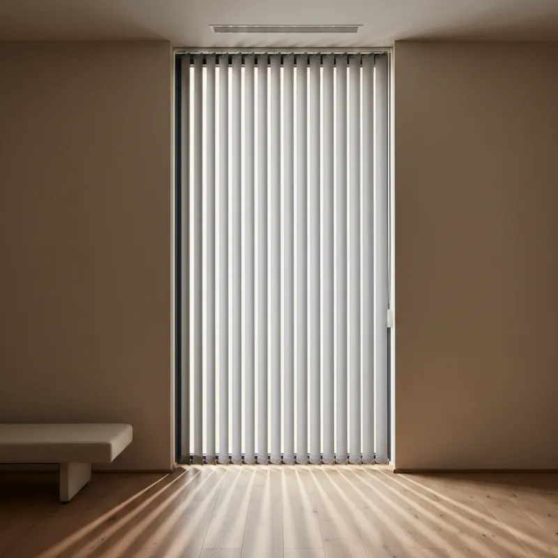 Vertical blinds offer adjustable light control, privacy, and a clean, ideal for large windows and sliding doors.